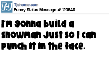 X I'm gonna build a snowman just so I can punch it in the face.