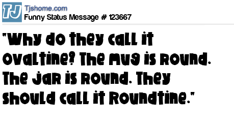 X "Why do they call it Ovaltine? The mug is round. The jar is round. They should call it Roundtine."