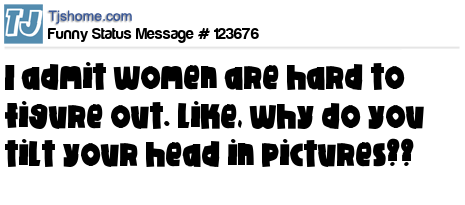 - # 183638 I admit women are hard to figure out. Like, why do they tilt their head in pictures ?