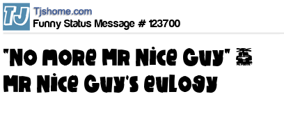 - # 106558 Well I guess it's ,,,," No more Mr. Nice-Guy "...... ~ Mr Nice Guy's eulogy
