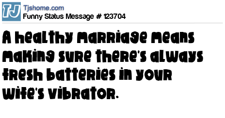 X says A healthy marriage means making sure there's always fresh batteries in your wife's vibrator.