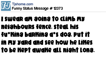 X is I swear am going to climb my neighbours fence, steal his fu*king barking a*s dog, put it in my yard and see how he likes to be kept awake all night long.