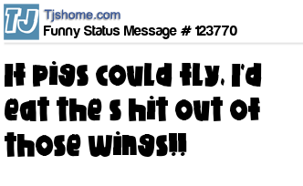 - # 96701 If pigs really could fly I bet their wings would taste delicious.