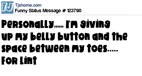 - # 139457 I was going to make one of those Bitstrips cartoons, but then I decided to pick the lint out of my belly button instead. I'm pretty sure I came out ahead ツ