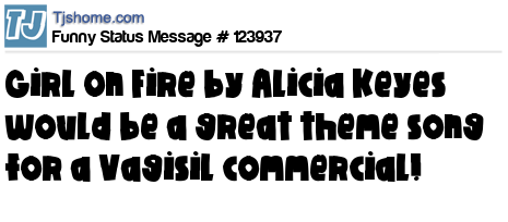 X is Girl On Fire by Alicia Keyes would be a great theme song for a Vagisil commercial!