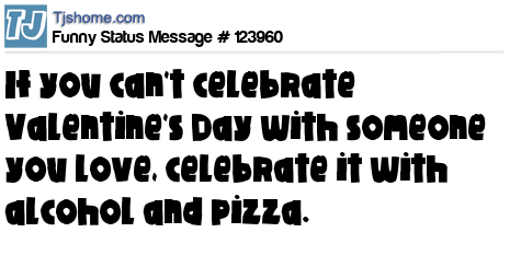 X says If you can't celebrate Valentine's Day with someone you love, celebrate it with alcohol and pizza.