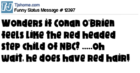 X wonders if Conan O'Brien feels like the red headed step child of NBC? .....oh wait, he does have red hair!