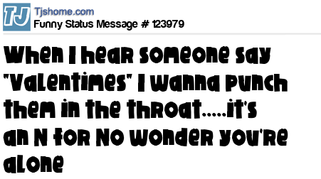 X is When I hear someone say "Valentimes" I wanna punch them in the throat.....it's an N for No wonder you're alone