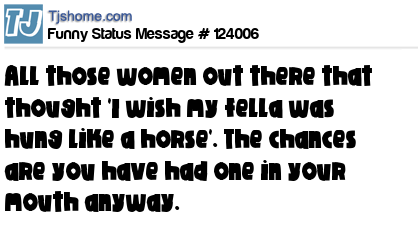 X says All those women out there that thought 'I wish my fella was hung like a horse'. The chances are you have had one in your mouth anyway.