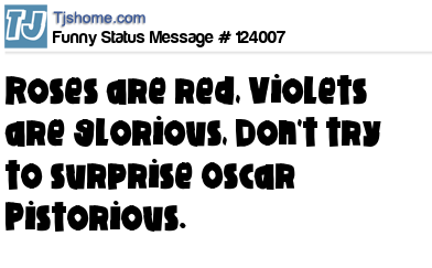 - # 124304 Roses are Red Violets are Glorious, Never Sneak up on Oscar Pistorius