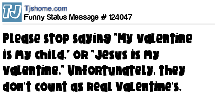 X Please stop saying "My Valentine is my child." or "Jesus is my Valentine." Unfortunately, they don't count as real Valentine's.