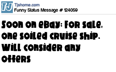 X says Soon on eBay: For sale, one soiled cruise ship. Will consider any offers