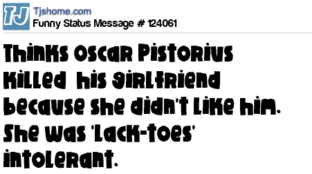 X Thinks Oscar Pistorius killed his girlfriend because she didn't like him. She was 'lack-toes' intolerant.