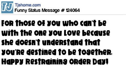 X For those of you who can't be with the one you love because she doesn't understand that you're destined to be together, Happy Restraining Order Day!