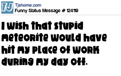 X says I wish that stupid meteorite would have hit my place of work during my day off.