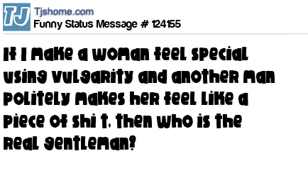 X says If I make a woman feel special using vulgarity and another man politely makes her feel like a piece of shi t, then who is the real gentleman?