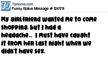 X My girlfriend wanted me to come shopping, but I had a headache... I must have caught it from her last night when we didn't have sex.