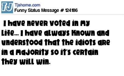 - # 124187 I have never voted in my life... I have always known and understood that the idiots are in a majority so it's certain they will win.