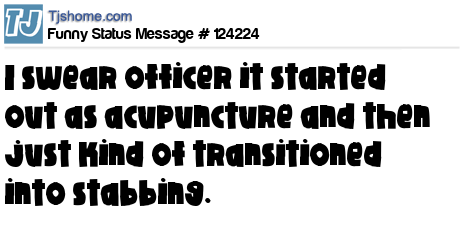 X says I swear officer it started out as acupuncture and then just kind of transitioned into stabbing.