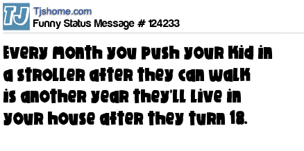 X says Every month you push your kid in a stroller after they can walk is another year they'll live in your house after they turn 18.