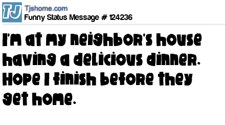 X says I'm at my neighbor's house having a delicious dinner. Hope I finish before they get home.