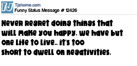 X says never regret doing things that will make you happy. we have but one life to live.. it's too short to dwell on negativities.