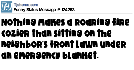 X Nothing makes a roaring fire cozier than sitting on the neighbor's front lawn under an emergency blanket.