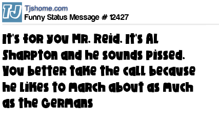 X is It's for you Mr. Reid. It's Al Sharpton and he sounds pissed. You better take the call because he likes to march about as much as the Germans