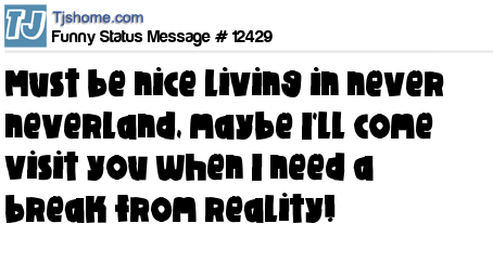 X is Must be nice living in never neverland, maybe I'll come visit you when I need a break from reality!