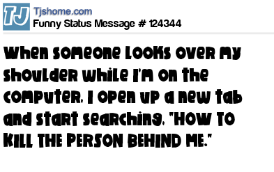 X says When someone looks over my shoulder while I'm on the computer, I open up a new tab and start searching, "HOW TO KILL THE PERSON BEHIND ME."