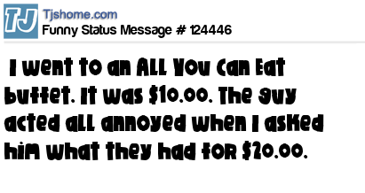 X I went to an All You Can Eat buffet. It was $10.00. The guy acted all annoyed when I asked him what they had for $20.00.