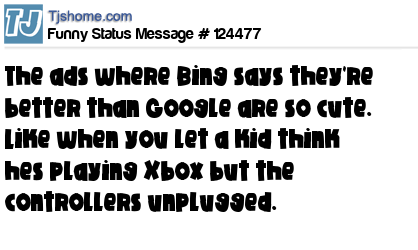 X The ads where Bing says they're better than Google are so cute. Like when you let a kid think hes playing Xbox but the controllers unplugged.