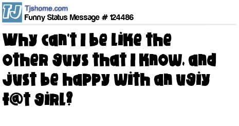 X Why can't I be like the other guys that I know, and just be happy with an ugiy f@t girl?