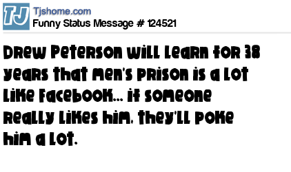 X is Drew Peterson will learn for 38 years that men's prison is a lot like Facebook... if someone really likes him, they'll poke him a lot.