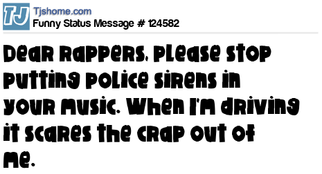 - # 165657 Dear Rappers, please stop putting police sirens in your songs. Sincerely, All Paranoid Drivers.