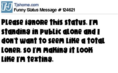 X Please ignore this status. I'm standing in public alone and I don't want to seem like a total loner, so I'm making it look like I'm texting.