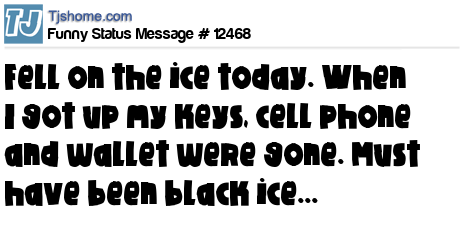 - # 48237 I slipped and fell on ice today. I realized it was black ice when I got up and my wallet and keys were missing.