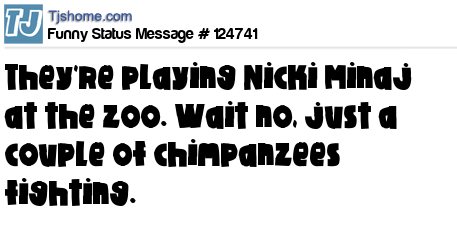 X says They're playing Nicki Minaj at the zoo. Wait no, just a couple of chimpanzees fighting.