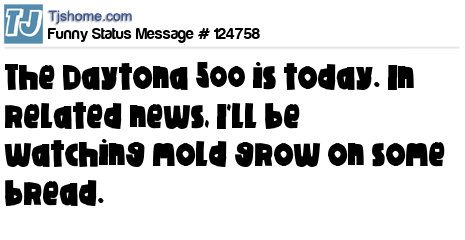 X The Daytona 500 is today. In related news, I'll be watching mold grow on some bread.