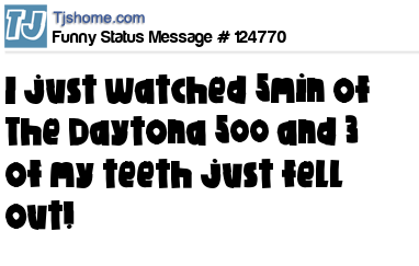 X I just watched 5min of The Daytona 500 and 3 of my teeth just fell out!