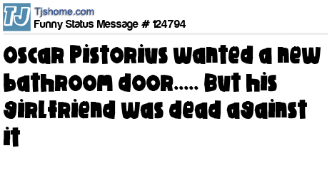 - # 167827 I heard Oscar Pistorius wanted a new bathroom door but his girlfriend was dead against it.