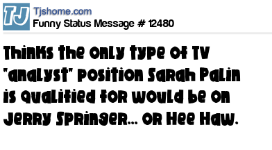 X thinks the only type of TV "analyst" position Sarah Palin is qualified for would be on Jerry Springer... or Hee Haw.