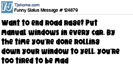 X says Want to end road rage? Put manual windows in every car. By the time you're done rolling down your window to yell, you're too tired to be mad