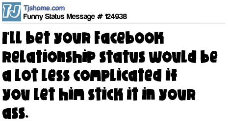 X says I'll bet your Facebook relationship status would be a lot less complicated if you let him stick it in your ass.