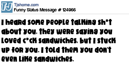 - # 25966 I heard some people talking $hit about you, they were saying you loved co#k sandwiches, but I stuck up for you - I told them you don't even like bread