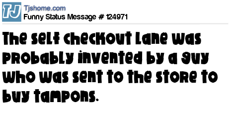 - # 183809 The self checkout line was invented for a guy who was sent to the store to buy tampons.
