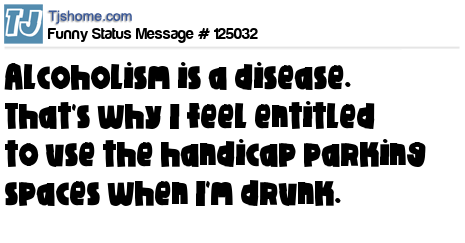 X says Alcoholism is a disease. That's why I feel entitled to use the handicap parking spaces when I'm drunk.