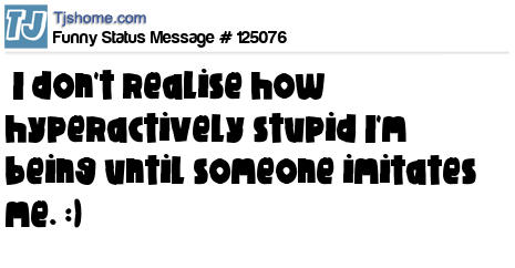 - # 125072 I don't realise how hyperactivity stupid I'm being until someone imitates me. :)
