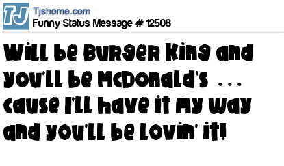 - # 24880 i'll be burger king and you'll be mcdonalds...ill be doing it my way and you'll be lovin it