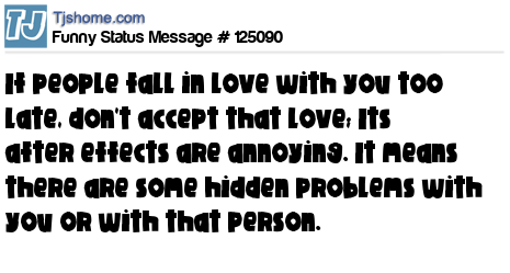 X If people fall in love with you too late, don't accept that love; Its after effects are annoying. It means there are some hidden problems with you or with that person.